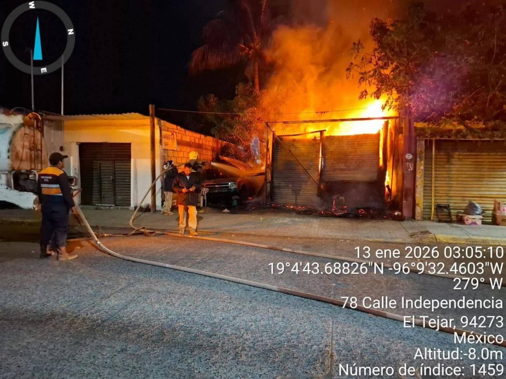Por instrucciones del alcalde Samuel Acosta, personal de la dirección de Protección Civil Municipal, a cargo de Antonio Rosas, atendió de manera inmediata el incendio registrado la madrugada de este martes en un taller mecánico, ubicado sobre la avenida Independencia, en la localidad de El Tejar.