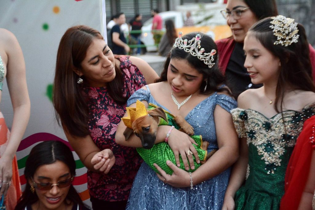 Decenas de personas acudieron al parque El Mundito, ubicado en el fraccionamiento Reforma, para presenciar la pasarela integrada por quince perritos, algunos de ellos con atuendos festivos, quienes desfilaron acompañados por integrantes de la Corte Real electa de las fiestas carnestolendas.
