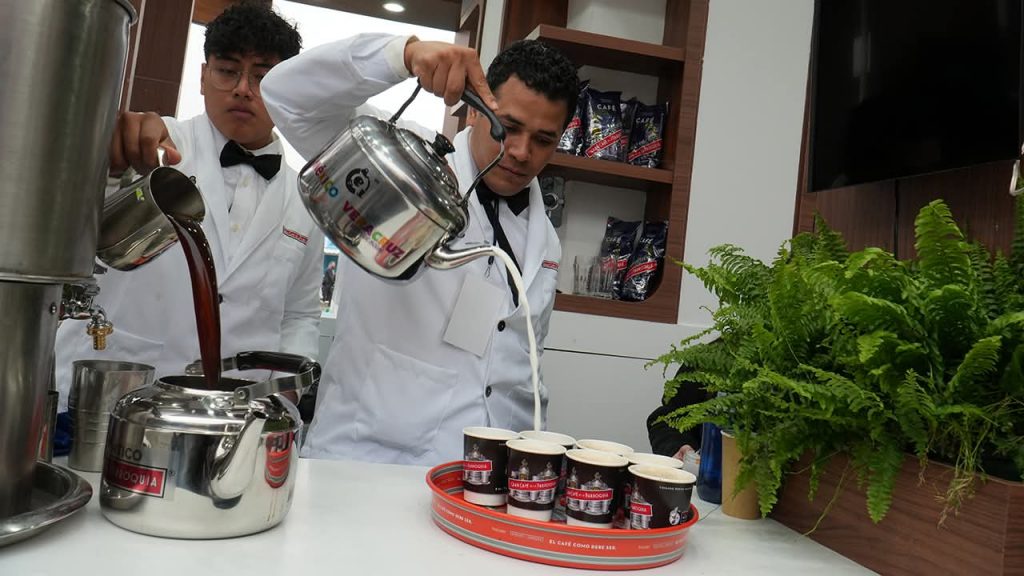 Para lograrlo, la comitiva del Auténtico Gran Café de La Parroquia 👨‍🍳👩‍🍳 está integrada por cinco personas con amplia experiencia 💼, quienes han atendido con dedicación ❤️ y profesionalismo 👌 la alta afluencia de visitantes que se acercan al stand atraídos por el famoso lechero 🥛☕.