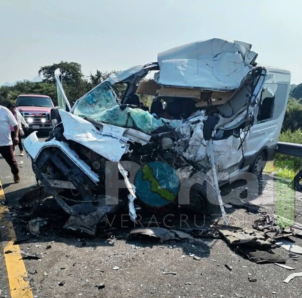 AltoLucero Ver.- Aparatoso accidente entre una camioneta Ford Transit procedente del municipio de 脕lamo Temapache, y una unidad de carga que transportaba paqueter铆a colisionaron esta tarde sobre la carretera federal Poza Rica – Cardel a la altura del entronque a la autopista en Palma Sola, cerca del kil贸metro 152+500 del municipio de Alto Lucero Veracruz.