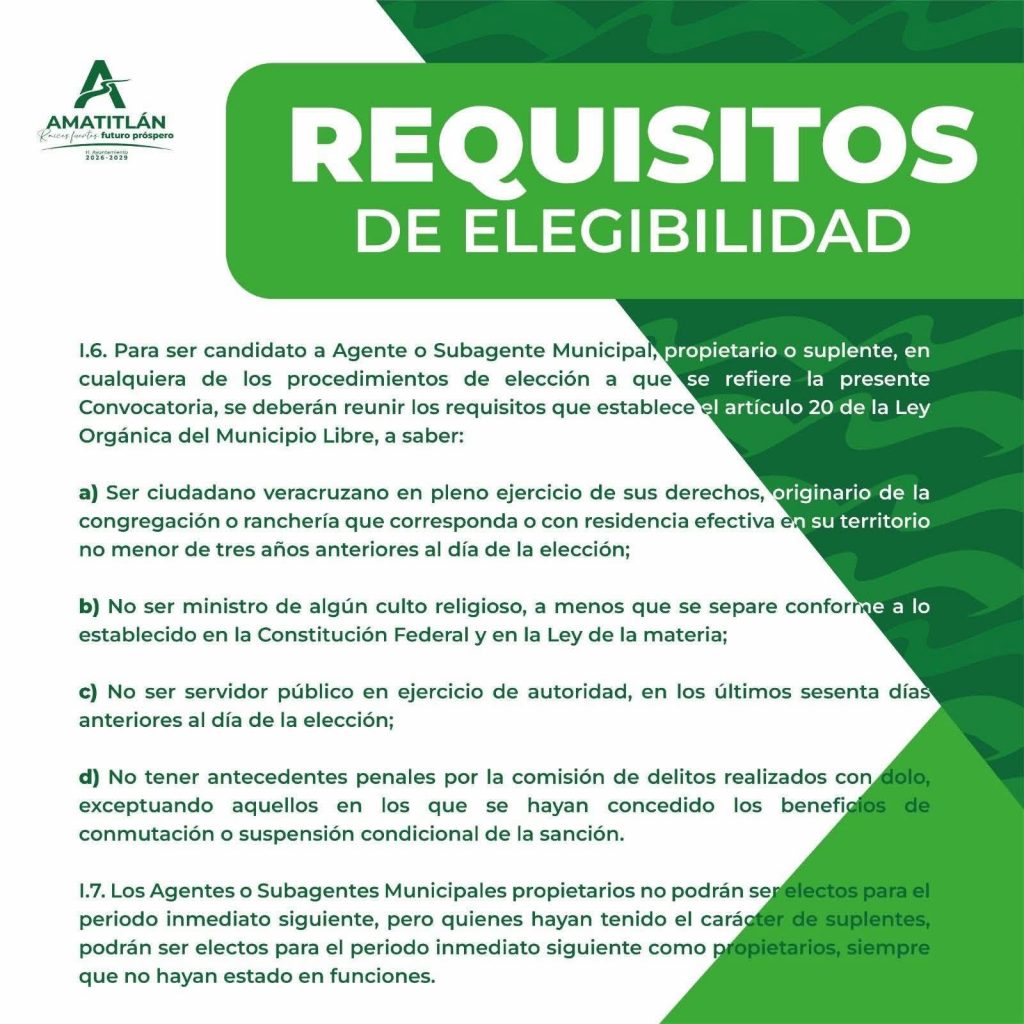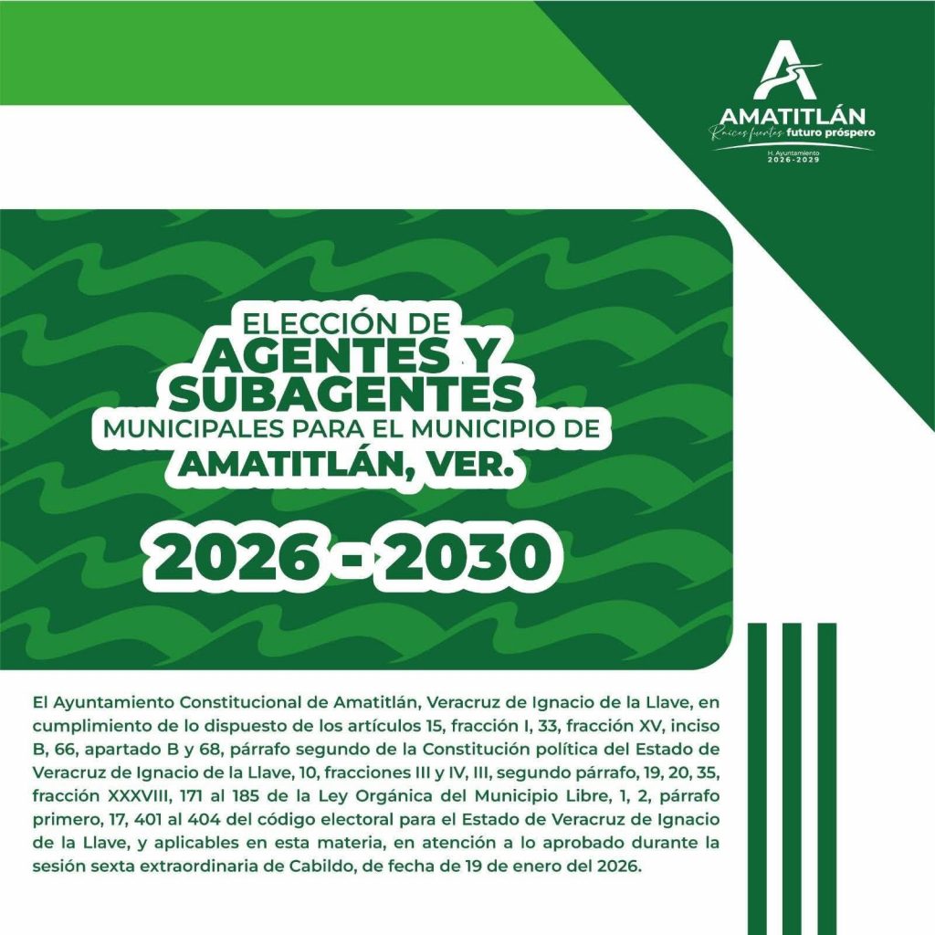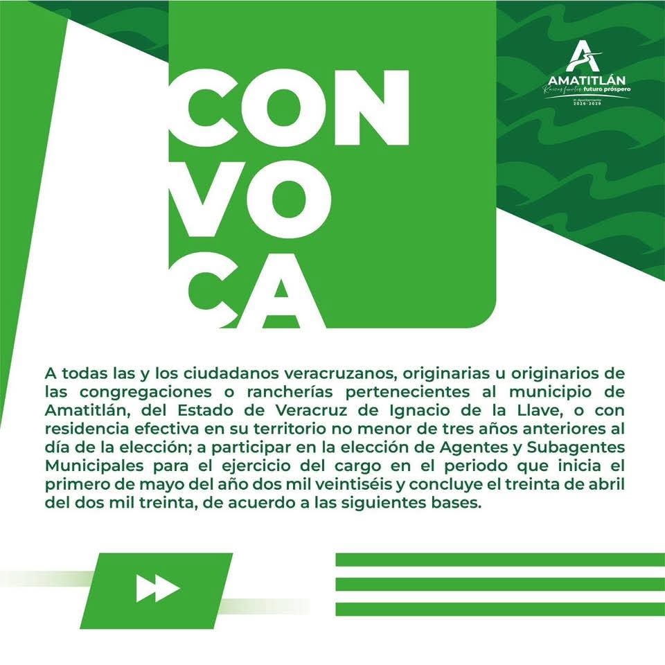 📢 El H. Ayuntamiento de #Amatitlán, Veracruz, invita a las y los ciudadanos a participar en la convocatoria para la elección de agentes y subagentes municipales.