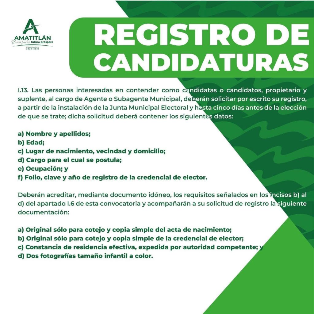 ℹ️ Informes en el Palacio de Gobierno del H. Ayuntamiento de Amatitlán o al 📞 2282 10 06 47.