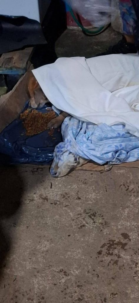 Tras el rescate, el animal presentaba hipotermia por el agua y el frío, pero ahora se encuentra alimentado y bajo el cuidado de una vecina solidaria que le brinda abrigo y cariño.