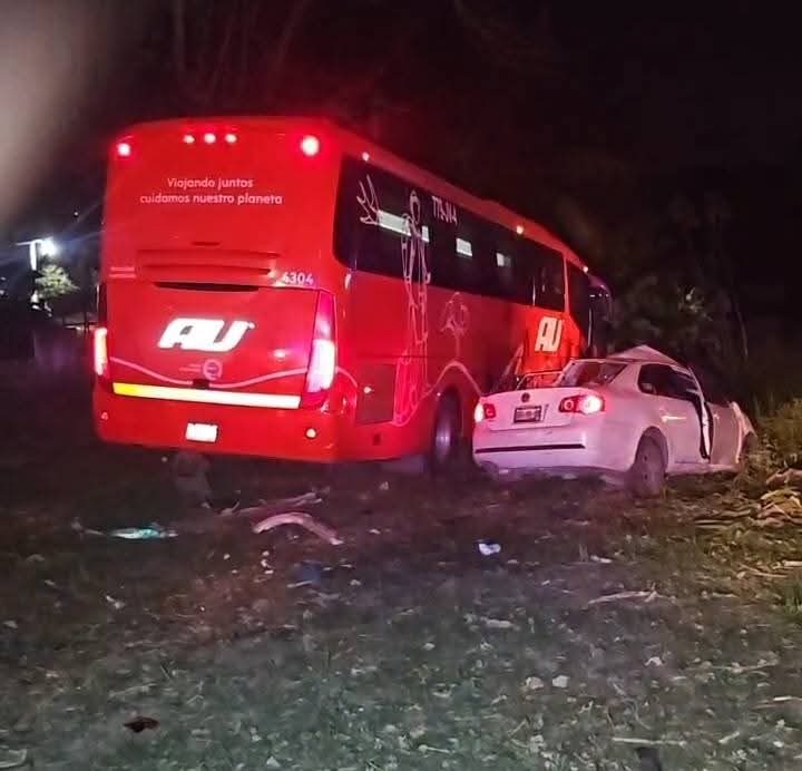El accidente ocurrió la madrugada de este domingo y las unidades que participaron fueron un autobús de la empresa AU número económico 3304 que había salido de Tuxtepec, Oaxaca, con dirección a la Ciudad de México, y un auto VW Bora, blanco, placas YGG-80-08.