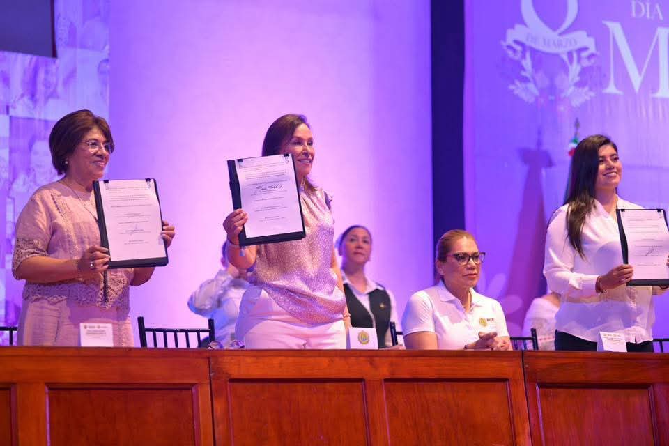 La gobernadora Rocío Nahle signó un convenio de colaboración con las alcaldesas de Xalapa, Daniela Guadalupe Griego Ceballos; Poza Rica, Janeth Adanely Rodríguez Rodríguez; Chicontepec, Aristea Fernández de la Cruz; Zozocolco de Hidalgo, Taggassy García Lobato; y San Juan Evangelista, Eloísa Zetina Gómez.
