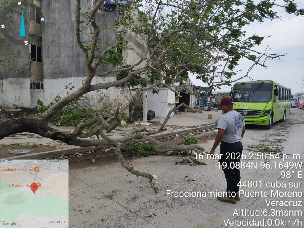 Medellín de Bravo, Veracruz, 16 de marzo de 2026.- Por instrucciones del alcalde de Medellín de Bravo, Samuel Acosta, la dirección municipal de Protección Civil, encabezada por Antonio Rosas, mantiene activo un operativo en distintos puntos del municipio para atender los reportes ciudadanos derivados de las fuertes rachas de viento ocasionadas por el Frente Frío número 41.