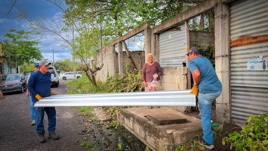 Estas láminas fueron distribuidas entre familias de distintos puntos del municipio, específicamente en el fraccionamiento Las Vegas, así como en las colonias Miguel Alemán, Carranza, Pescadores y en el Infonavit El Morro, beneficiando a quienes sufrieron daños en sus hogares tras el paso de este fenómeno meteorológico atípico.