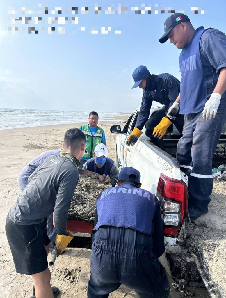 Asimismo, se informó la atención de aproximadamente 40 kilómetros de litoral en playas ubicadas en los municipios de Tamiahua, Cazones de Herrera y Tuxpan, donde se han efectuado labores de recolección manual de residuos petrolizados, con la participación de Personal Naval, DEFENSA, Guardia Nacional, autoridades municipales y Capitanías de Puerto de Tamiahua, Cazones de Herrera y esta Ciudad, Comisión Nacional de Áreas Naturales Protegidas (CONAPNP), Universidad Veracruzana, Protección Civil, voluntarios de grupos tortugueros, prestadores de servicios y diversas dependencias e instituciones.