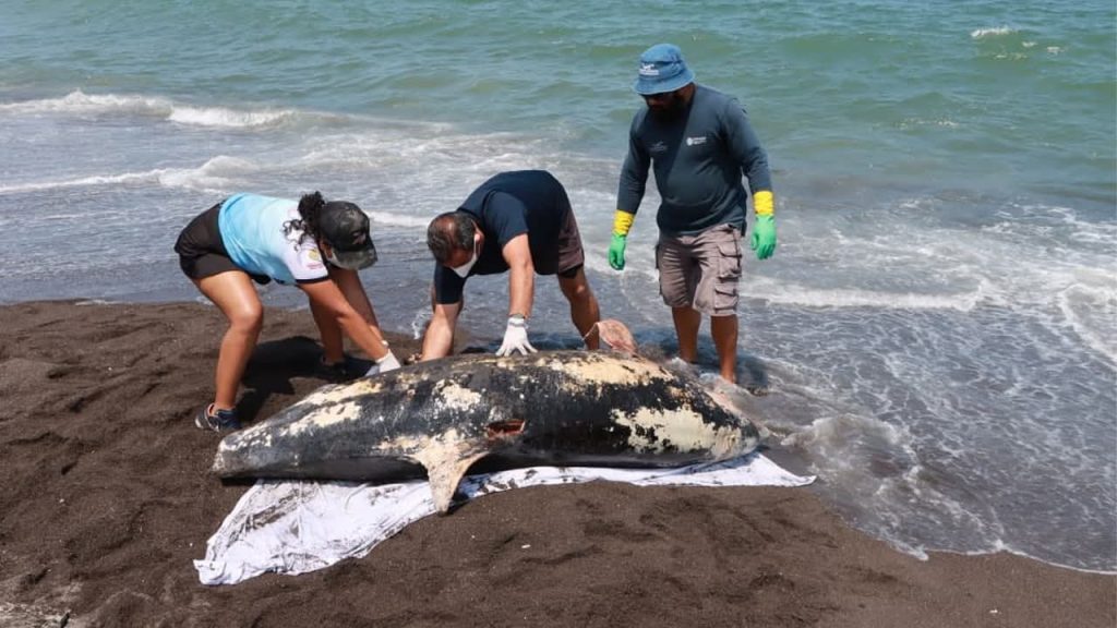 De acuerdo con la evaluación realizada por personal especializado, el ejemplar, una hembra de la especie Tursiops truncatus (delfín nariz de botella), presentaba un avanzado estado de descomposición.
