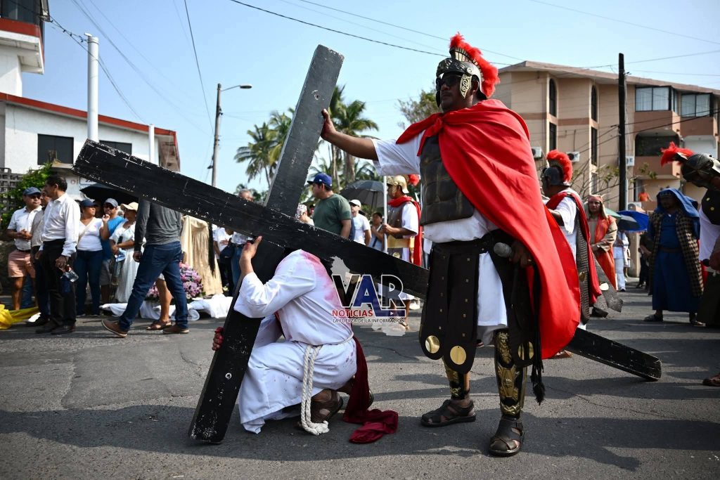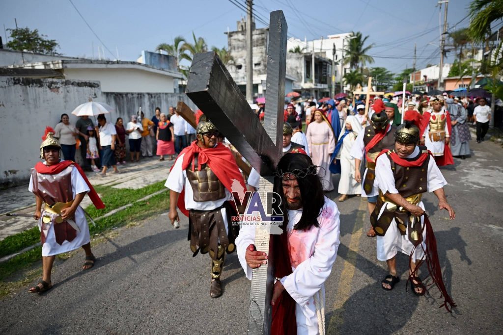 Así se vivió este Viernes Santo el tercer viacrucis viviente que realizaron fieles de la parroquia “Nuestra señora de Santa Ana”, por calles de la cabecera municipal de Boca del Río.