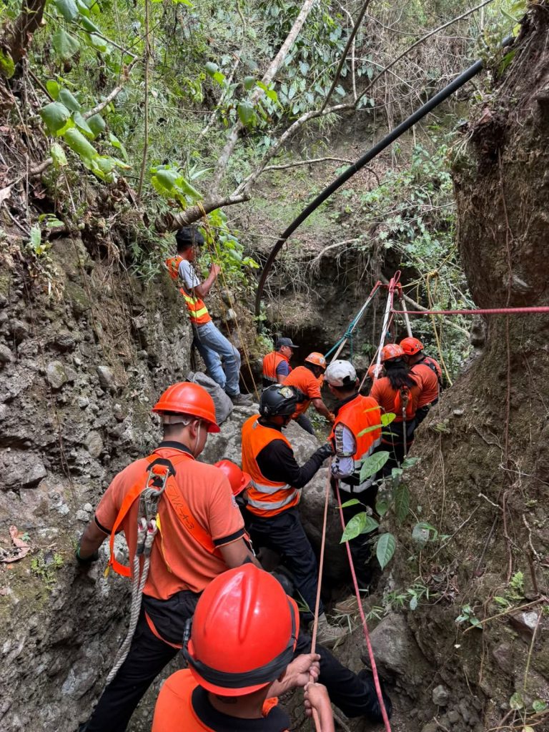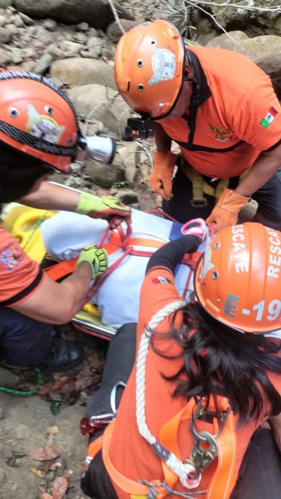 En ese momento iniciaron el descenso los elementos del Escuadrón Nacional de Rescate que, con equipo profesional, bajaron por más de 100 metros hasta donde yacía el cuerpo sin vida del hombre de aproximadamente 55 años de edad.