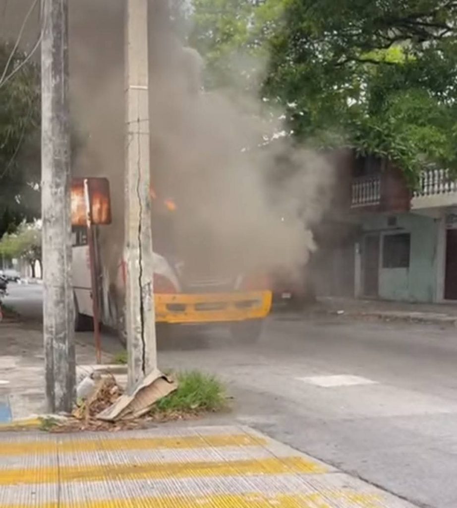 El autobús conocido como “Muerte-Sur” por la forma temeraria en que son conducidos siempre, pasándose altos, chocando, atropellando y con pasajeros casi colgados en las puertas, fue consumido por el fuego.