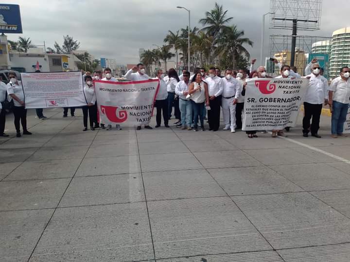 Este lunes por la mañana el Movimiento Nacional de Taxistas convocó a una manifestación de taxistas en el que participaron aproximadamente dos mil unidades partiendo desde el boulevard Ruiz Cortínes y Costa de Oro hasta las instalaciones del C5 donde están las oficinas de la delegación estatal de Transporte público.