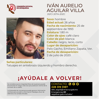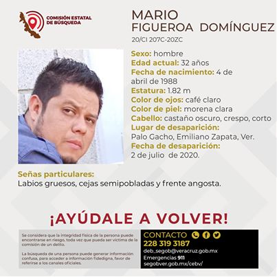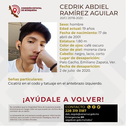 La Comisión Estatal de Búsqueda de personas desaparecidas en Veracruz emitió tres alertas por la desaparición de tres jóvenes del género masculino quienes fueron vistos por última vez en Palo Gacho, municipio de Emiliano Zapata el pasado 2 de julio.