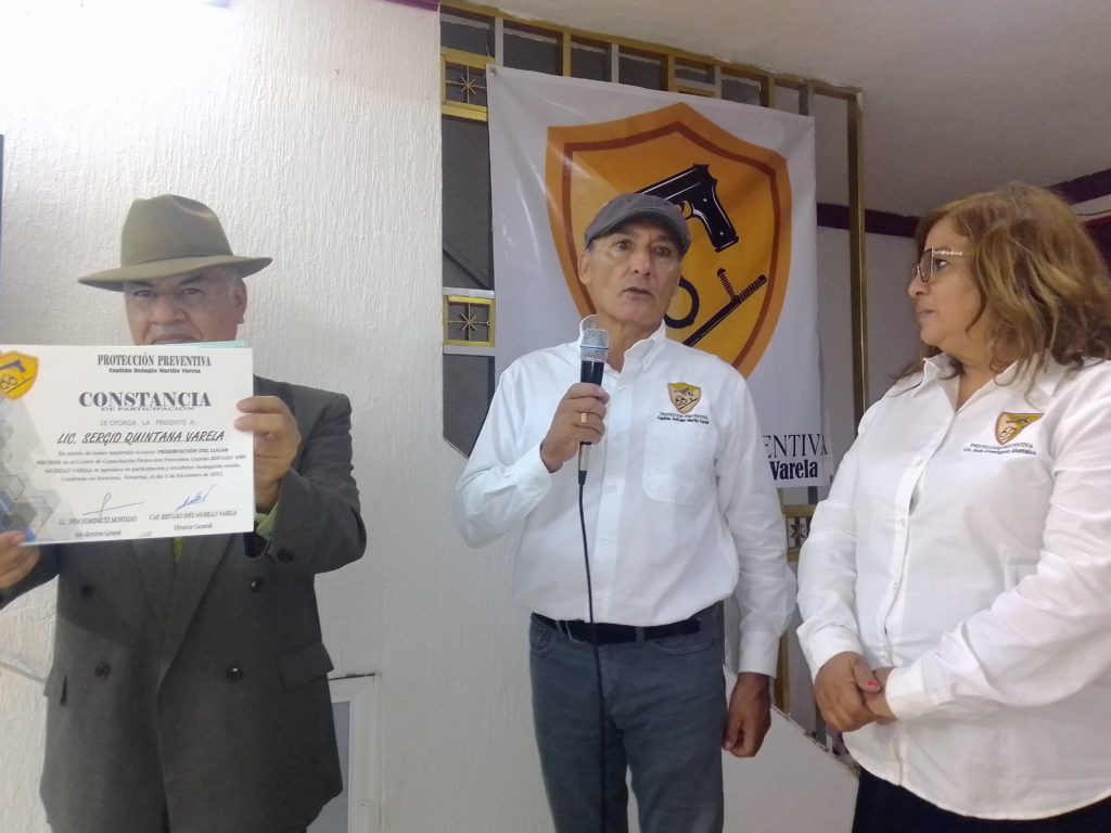 Sergio Quintana Varela, licenciado en Derecho y perito en criminología y criminalística impartió la conferencia “Preservación en el lugar de los hechos” como parte del programa del centro de capacitación Protección preventiva que está llevando a cabo el capitán Refugio Murillo Varela.