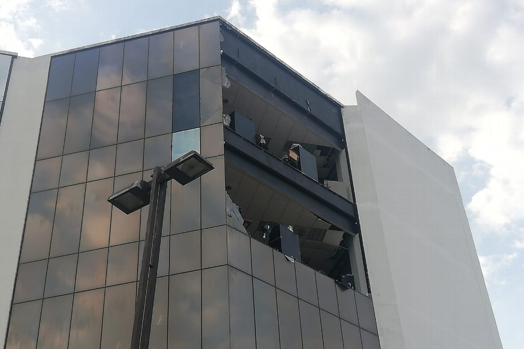 Personal de los juzgados llegaron a su centro de trabajo para retirar bloques de un plafón que se desprendieron por las fuertes rachas de viento. A través de las redes sociales se viralizaron fotos y videos del momento en que se aprecia como los expedientes vuelan de los escritorios por las rachas del viento.