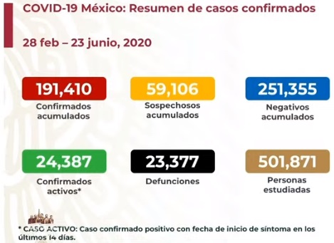 La Secretaría de Salud federal reportó este martes 6 mil 822 nuevos casos confirmados de Covid-19, con lo que ya se acumulan 191 mil 410 casos desde el inicio de la epidemia en México.