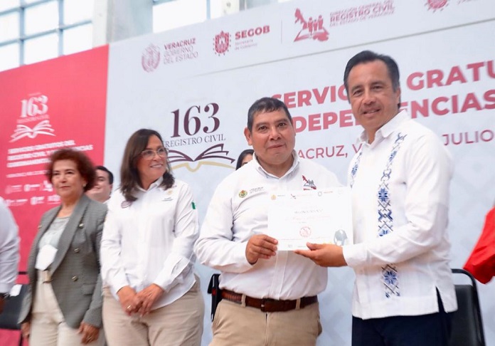 En el aniversario de la Promulgación de las Leyes de Reforma y la creación del Registro Civil, el gobernador del Estado, Cuitláhuac García Jiménez, acompañado por el titular de la Secretaría de Gobierno (SEGOB), Eric Cisneros Burgos, entregaron actas de nacimiento extemporáneas a ciudadanos.