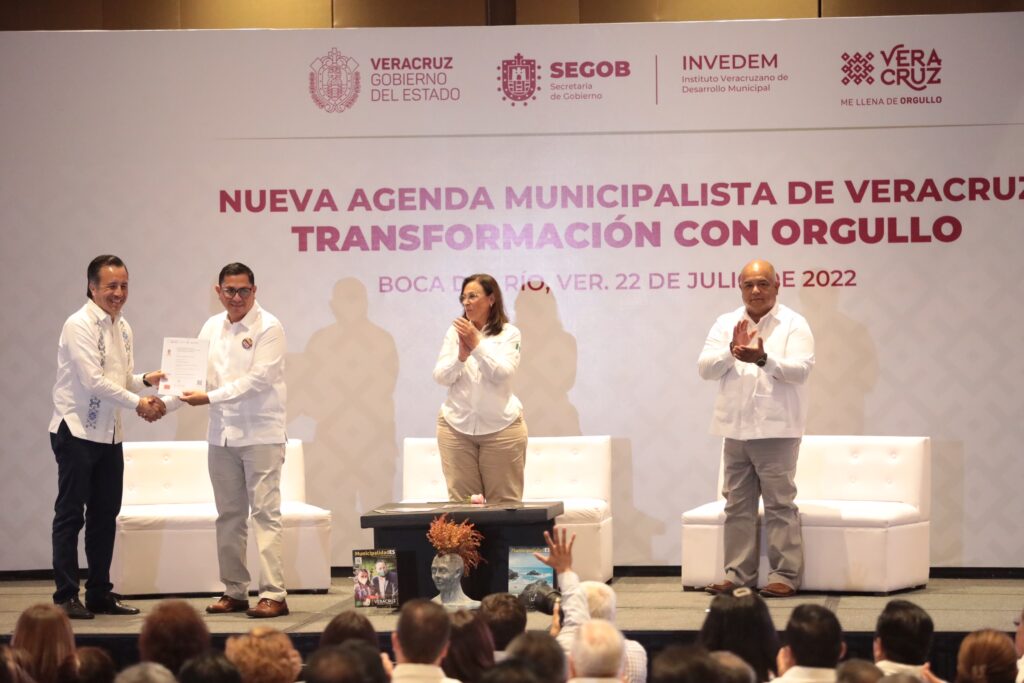 En este marco el Gobierno de Veracruz firmó el Convenio Macro de Colaboración del Instituto Veracruzano de Desarrollo Municipal (INVEDEM) con los munícipes María Esther López Callejas, Actopan; Raymundo Andrade Rivera, Coatepec; Mariela Hernández García, Las Choapas; Óscar Guzmán de Paz, Pánuco, y Eric Domínguez Vázquez, Papantla, para implementar políticas públicas que impulse el desarrollo de estos.
