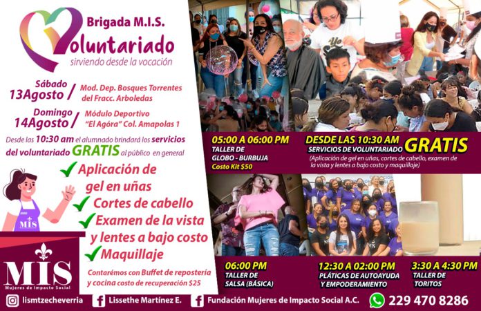 Veracruz, Ver., 11 de agosto de 2022.- Alumnos que tomaron talleres gratuitos impartidos por la asociación civil Mujeres de Impacto Social, fundada por Lissethe Martínez Echeverría, realizarán una muestra de lo que aprendieron durante los talleres pues ofrecerán los servicios de cortes de cabello, repostería, aplicación de uñas y maquillaje profesional, esto como parte de la culminación de los talleres, los cuales tienen una duración de cuatro meses.