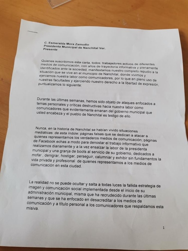 Durante las últimas semanas, hemos sido objeto de ataques enfocados a temas personales y críticas destructivas hacia nuestra labor como comunicadores que evidentemente emanan del gobierno municipal que usted encabeza y el pueblo de Nanchital es testigo de ello.