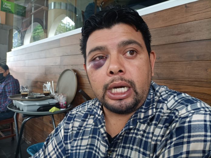La negativa de firmar, dijo por último, encendió los ánimos de los presentes y fue en ese momento en que lo agredieron unas diez personas, atacándolo a golpes, tirándolo al piso y pateándolo en diferentes partes del cuerpo, resultando con lesiones en la espalda, extremidades, en la cara y en el ojo derecho con un derrame que lo está valorando el médico especialista.