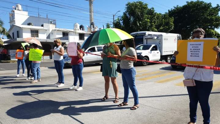 Bloquean avenida J.B. Lobos, exigen a la SEV mejora de infraestructura en kínder