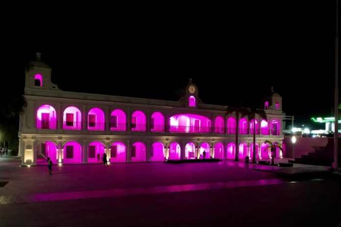En punto de las 19:30 horas, el palacio municipal se iluminó de color rosa y con esto dieron inicio las actividades de octubre contra el cáncer de mama.