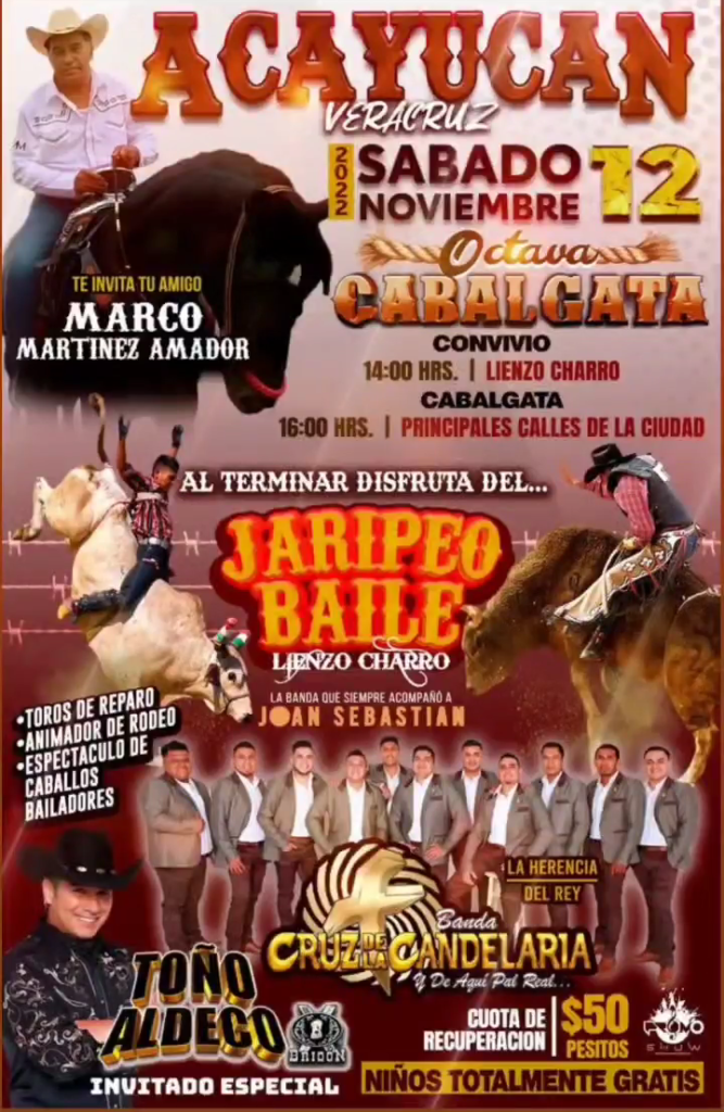 Acayucan, Ver., 02 de octubre de 2022.- El próximo sábado 12 de noviembre no puedes perderte la octava cabalgata por las principales calles de Acayucan, misma que estará encabezada por el diputado local Marco Martínez Amador. Asiste y diviértete en familia.