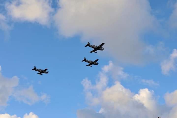 En el desfile sobrevolaron un prototipo de aeronave realizada por la armada de México y el Conacyt.