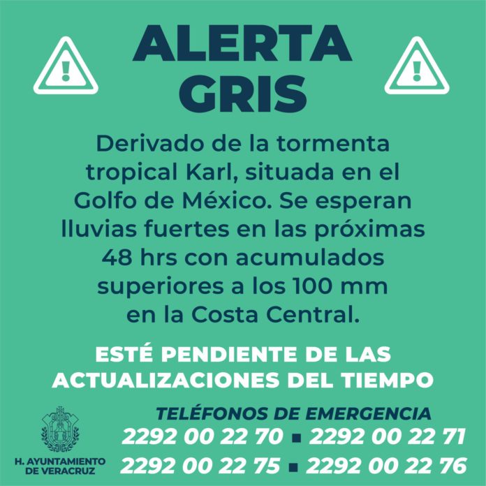 El gobierno municipal de Veracruz, a través de la unidad de Protección Civil, informa sobre la Alerta Gris derivada de la tormenta tropical Karl.