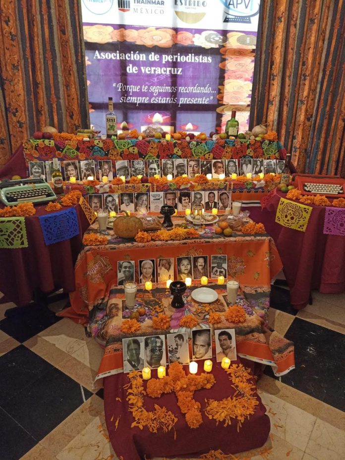 Este lunes 31 de octubre, las actividades de los periodistas para recordar a sus compañeros fueron una misa en la Catedral de Veracruz a la que acudieron los más madrugadores, en la que se pidió por el eterno descanso de los colegas y que duró solo 35 minutos. Después se realizó la develación del altar de muertos en un restaurante ubicado en el Centro Histórico de Veracruz en el que se reúnen los periodistas para darle cobertura a las conferencias de prensa. El altar de muertos contenía los platillos que eran del agrado de los comunicadores fallecidos como manzanas, caña, jícama, calabaza, licor, las tradiciones picadas veracruzanas, galletas de vainilla y chocolate, pan de muerto, entre otras delicias gastronómicas. Del lado izquierdo y derecho del altar se encontraba una máquina de escribir en cada lado, recordando que los periodistas utilizaban esta herramienta para redactar sus notas en las décadas de los setentas, ochentas y noventas. hasta que llegó la computadora a sustituir las máquinas de escribir.