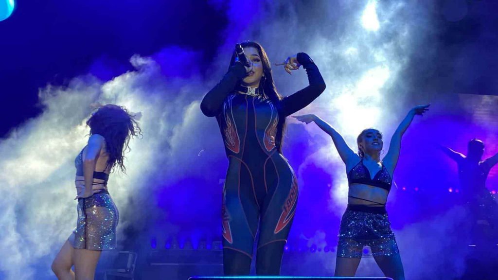 La también influencer y empresaria salió al escenario después de las 10 de la noche y para deleite de sus fans cantó sus mejores interpretaciones.