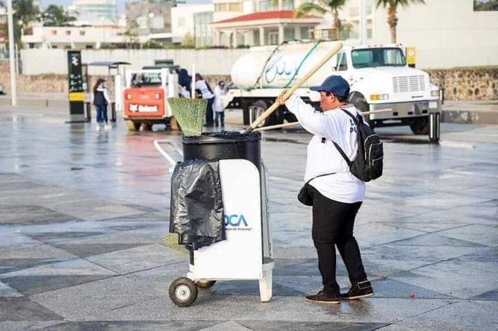 Unánue Abascal reconoció a todos los integrantes de la dirección de Limpia Pública, quienes desde temprana hora se sumaron al operativo amanecer, para barrer y lavar las banquetas sin dejar de atender la zona turística independientemente de la recolección domiciliaria que continuó con normalidad.