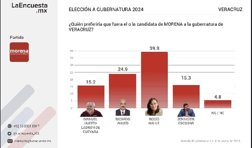 Así van los números en Veracruz iniciando el año 2023 rumbo a la gubernatura de 2024.**Una vez más Rocío Nahle encabeza las preferencias internas de los militantes de Morena, la sigue Ahued.**Hay unos que se dicen ser los “elegidos” para Veracruz y ni siquiera figuran entre la preferencia de la militancia.