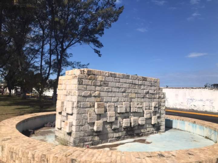 Este monumento estaba enfrente del ADO, pero hace unos años fue removido a Allende Norte y poco a poco se llevaron las esculturas de bronce. El muro luce vacío y triste por la falta de los niños pescadores.