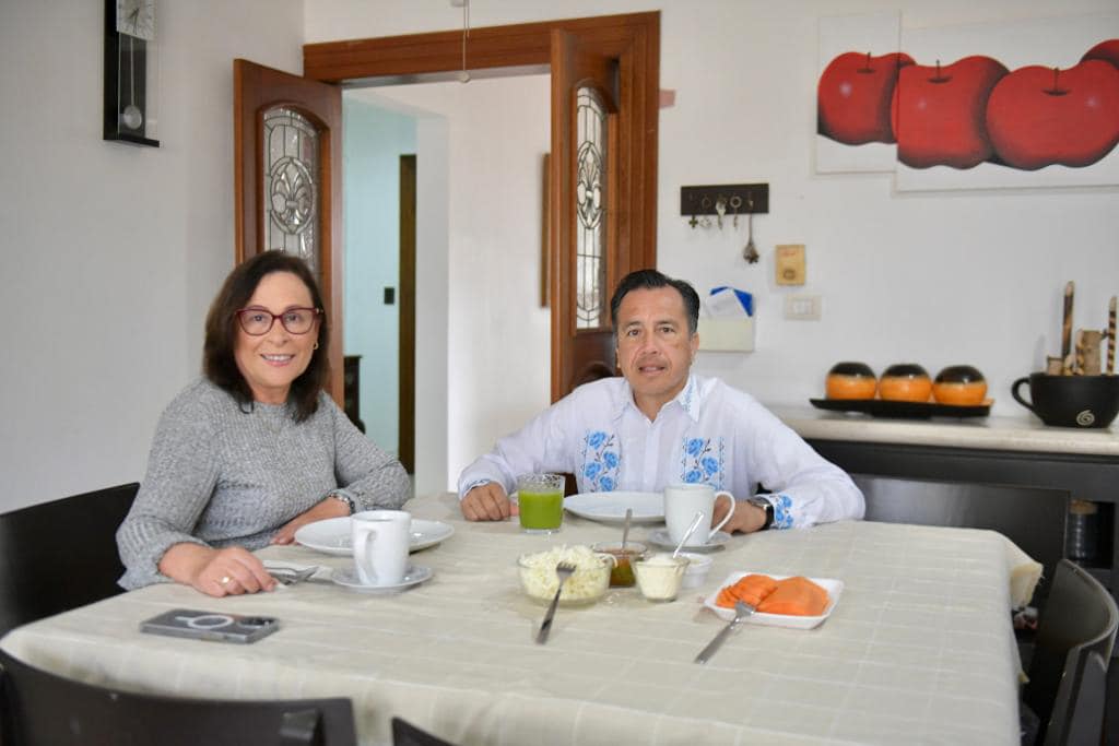 Coatzacoalcos, Ver. El gobernador Cuitláhuac García Jiménez fue invitado de lujo a la casa de la secretaria de Energía, Rocío Nahle García para tomar el desayuno en la ciudad porteña.