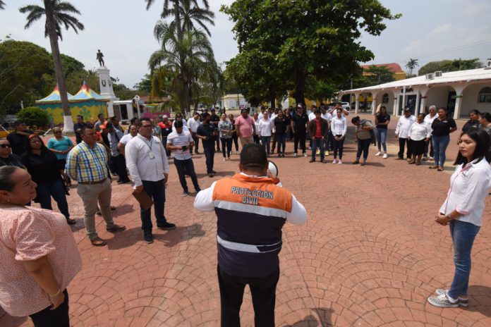 Medellín de Bravo, Ver., 19 abril 2023.- En el marco del Primer Simulacro Nacional y con el objetivo de fomentar la cultura de la protección civil y el reforzamiento de las capacidades de reacción ante los efectos de un fenómeno natural, este día en punto de las once de la mañana, se llevó a cabo el primer simulacro de evacuación 2023 en el edificio del Ayuntamiento de Medellín.