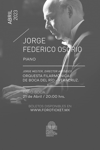 Veracruz, Ver., 20 de abril de 2023.- El día de mañana viernes 21 de abril, a las 20:00 horas, se realizará el concierto de la Orquesta Filarmónica Boca del Río- Veracruz en el Foro Boca con el maestro Jorge Mester, director artístico de la orquesta, y teniendo como artista invitado al panista concertista mexicano, Jorge Federico Osorio.