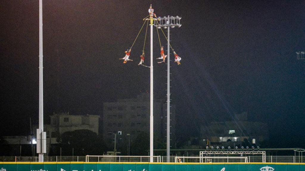 Boca del Río, Ver.- Durante la ceremonia de inauguración en el Estadio Beto Ávila, casa de El Águila de Veracruz, el ballet folklórico de la Universidad Veracruzana engalanaron con su tradicional baile de “La Bamba”, además, por primera vez, los Voladores de Papantla realizaron su ritual de vuelo atrás de los jardines del Beto Ávila.