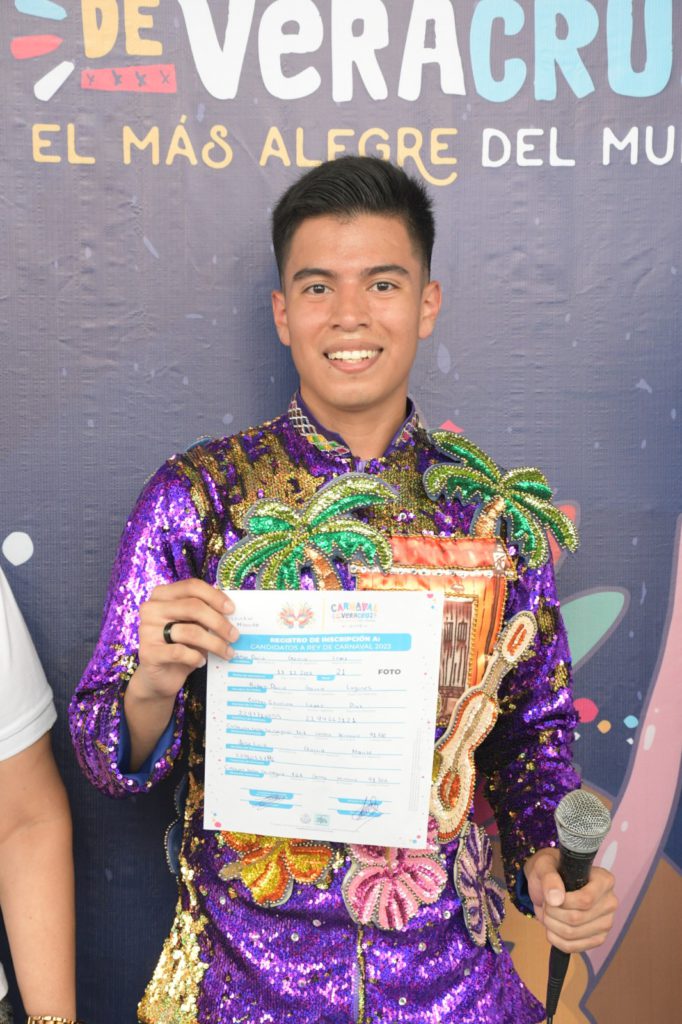 H. Veracruz, Ver. 27 de abril de 2023.- La mañana de este jueves el joven Johan Darío García López obtuvo su registro oficial como candidato a rey del carnaval de Veracruz 2023 “El más alegre del mundo”, mismo que tendrá lugar del 29 de junio al 5 de julio.