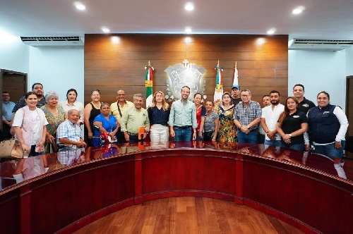 El alcalde de Boca del Río, Juan Manuel Unánue Abascal recibió en sala de cabildo a comerciantes de la cabecera municipal, con quienes coordinará proyectos en beneficio de la economía local.