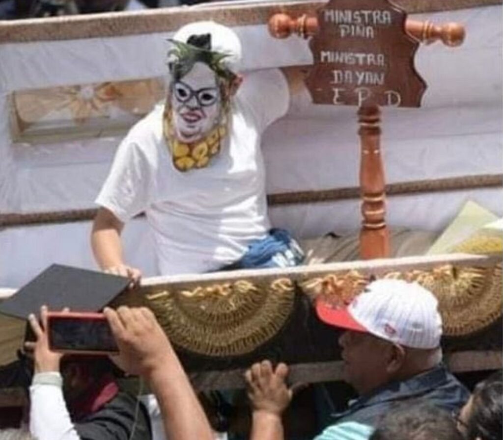 A través de las redes sociales se hacen virales las imágenes donde aparece el secretario de Gobierno, Eric Cisneros Burgos cargando un ataúd en la manifestación contra la Suprema Corte de Justicia de la Nación, lo cual es criticado por sectores sociales y podría costarle su carrera política al irreverente funcionario.