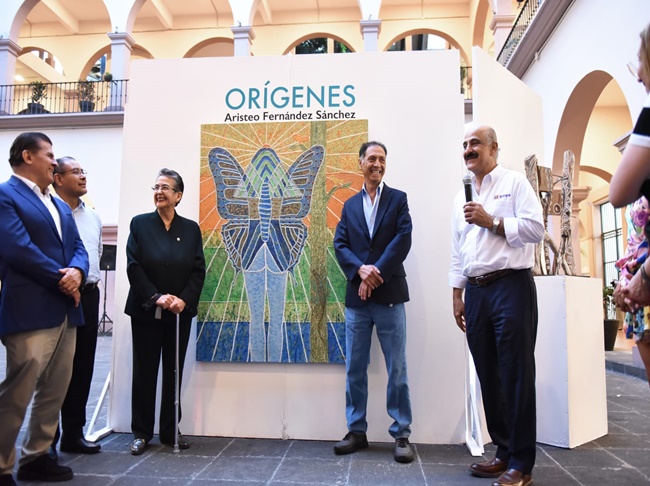 Xalapa, Ver.- El presidente municipal Ricardo Ahued Bardahuil y la senadora Gloria Sánchez Hernández inauguraron este viernes la exposición de plástica “Orígenes”, del maestro Aristeo Fernández, misma que permanecerá en el patio central de Palacio Municipal hasta el 5 de agosto.