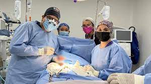 La paciente de un día de vida fue atendida por el equipo de Pediatría y Neonatología; una vez estabilizada, ingresó a quirófano donde recibió un procedimiento de resección en bloque, en el que participaron el cirujano especialista, anestesiólogos y enfermeras quirúrgicas.