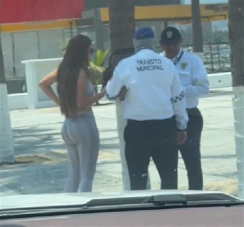 En el video no se le ve muy contenta a la actual reina del carnaval de Veracruz e incluso intercambia palabras con los agentes de Tránsito.