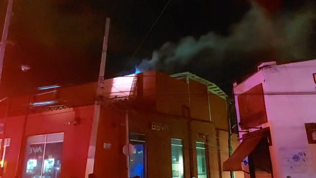 Dónde tras el siniestro, suscitado en la zona de cajeros y la planta alta de dicha institución bancaria, que afectó en menor medida a la pastelería Collado, en el cruce de Enríquez con Juarez, ocasionando una intensa movilización de personal y unidades de emergencia.