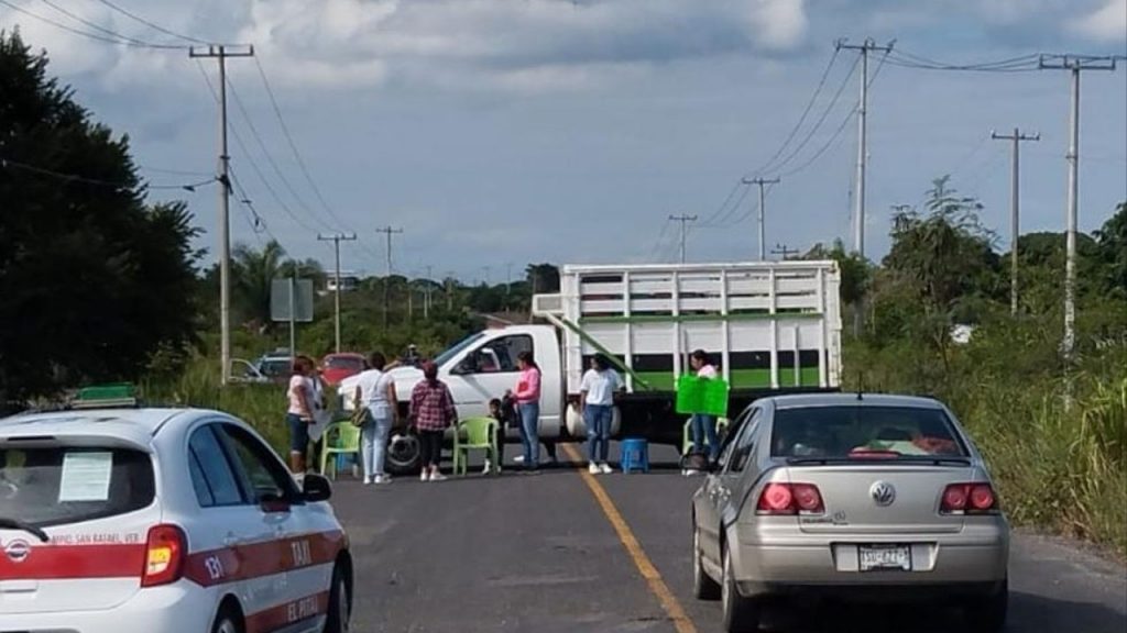 El cierre carretero se ubica a la altura de la gasera de Guadalupe Victoria, en la comunidad de también conocida como Potrero Nuevo.