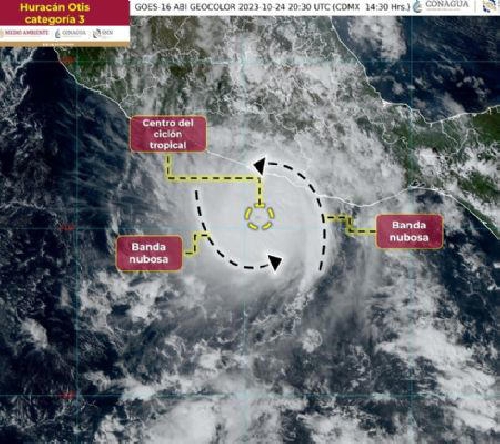 El Servicio Metrológico Nacional confirmó que Otis se convirtió en un huracán de categoría 5 y ante las rachas de viento que registra y su fuerza se puso en alerta a Guerrero, estado donde estará impactando.