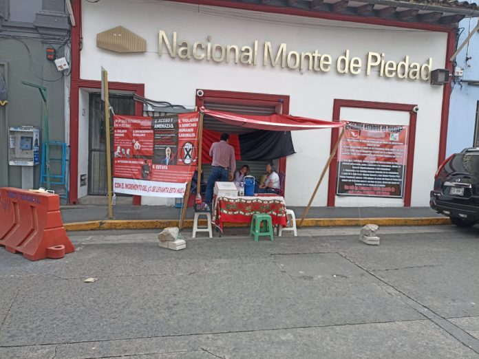 Xalapa, Ver., 02 de marzo de 2024.- Después de quince días de mantener la huelga en las instalaciones del Nacional Monte de Piedad, ya hay acuerdos de mejoras salariales y prestacionales para los sindicalizados, luego de tres años de no recibir estos beneficios, pero el convenio respectivo será votado en asamblea por los agremiados en diez días más.